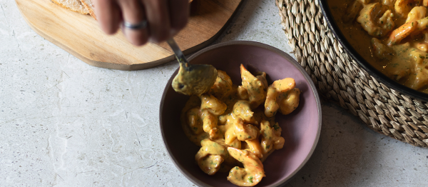 Ontdoe de scampi’s van hun pantser en verwijder het darmkanaal. Bak de scampi’s in bruisende boter aan. Bak ze enkel rondom bruin en zie dat ze niet gaar worden! Kruid ze met peper en zout. Giet een scheut cognac bij de scampi’s en flambeer ze. Doe de scampi’s en het scampivocht even uit de pan en houd ze warm. Doe de tomatenketchup in dezelfde pan, samen met een busje room, 2 el currypoeder en de fijngehakte peterselie. Roer alles goed door elkaar en laat het 2 min al roerend inkoken. Doe de scampi’s en het bakvocht terug in de pan en laat even gaar / warm worden. Kruid eventueel nog bij met peper en zout en voeg toe wat je mist. Het is echt naar smaak bij te kruiden. Eventueel extra currypoeder of wat chilipeper om de saus een beetje pikanter te maken. De saus is super lekker om te dippen met stokbrood of een ander broodje naar keuze.