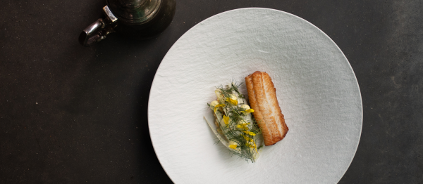 Neem een bord en start met een lepel couscous, gevolgd door de venkelsalade. Voeg daarna een quenelle van de caponata toe en eindig met de gebakken zeetong.